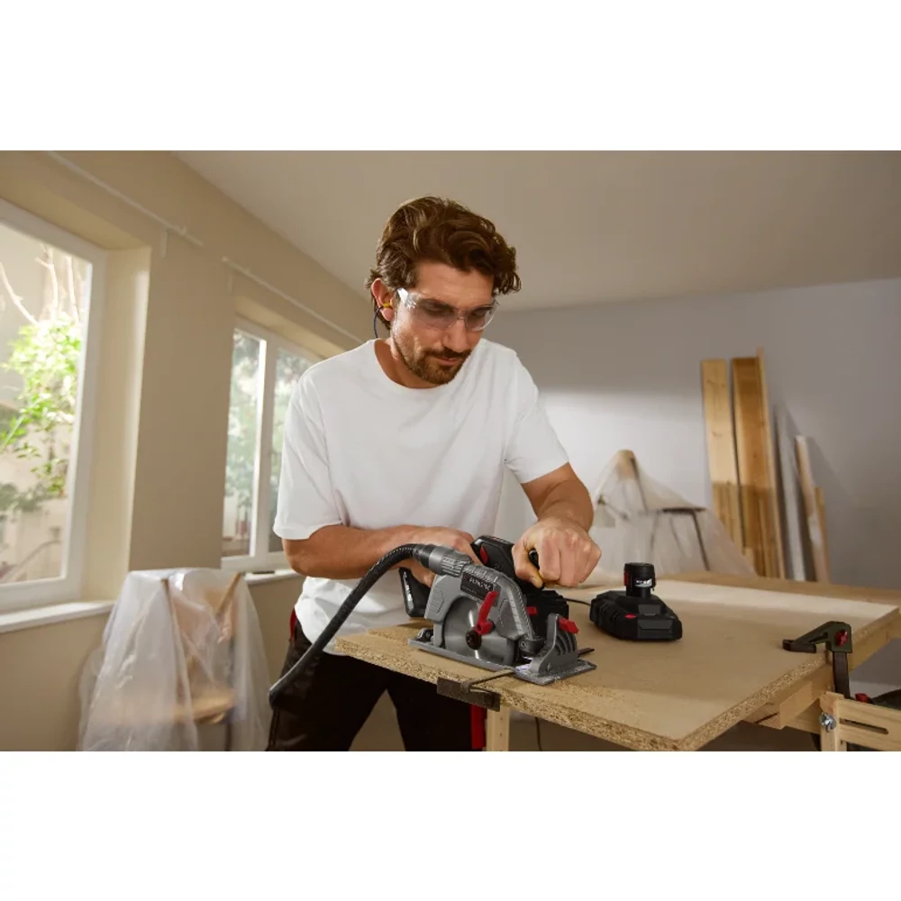 - Fűrészpor kidobás az erős ventilátornak köszönhetően – a kidobóoldal balra vagy jobbra is használható
