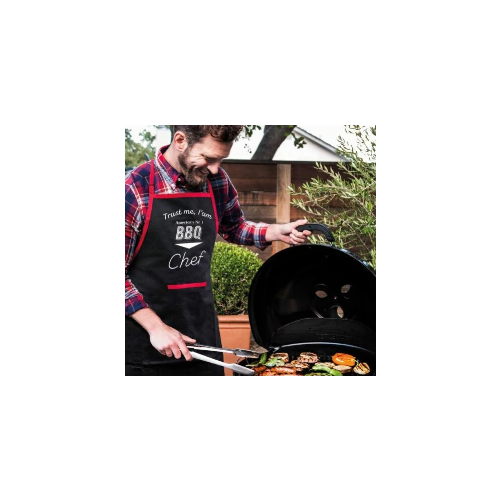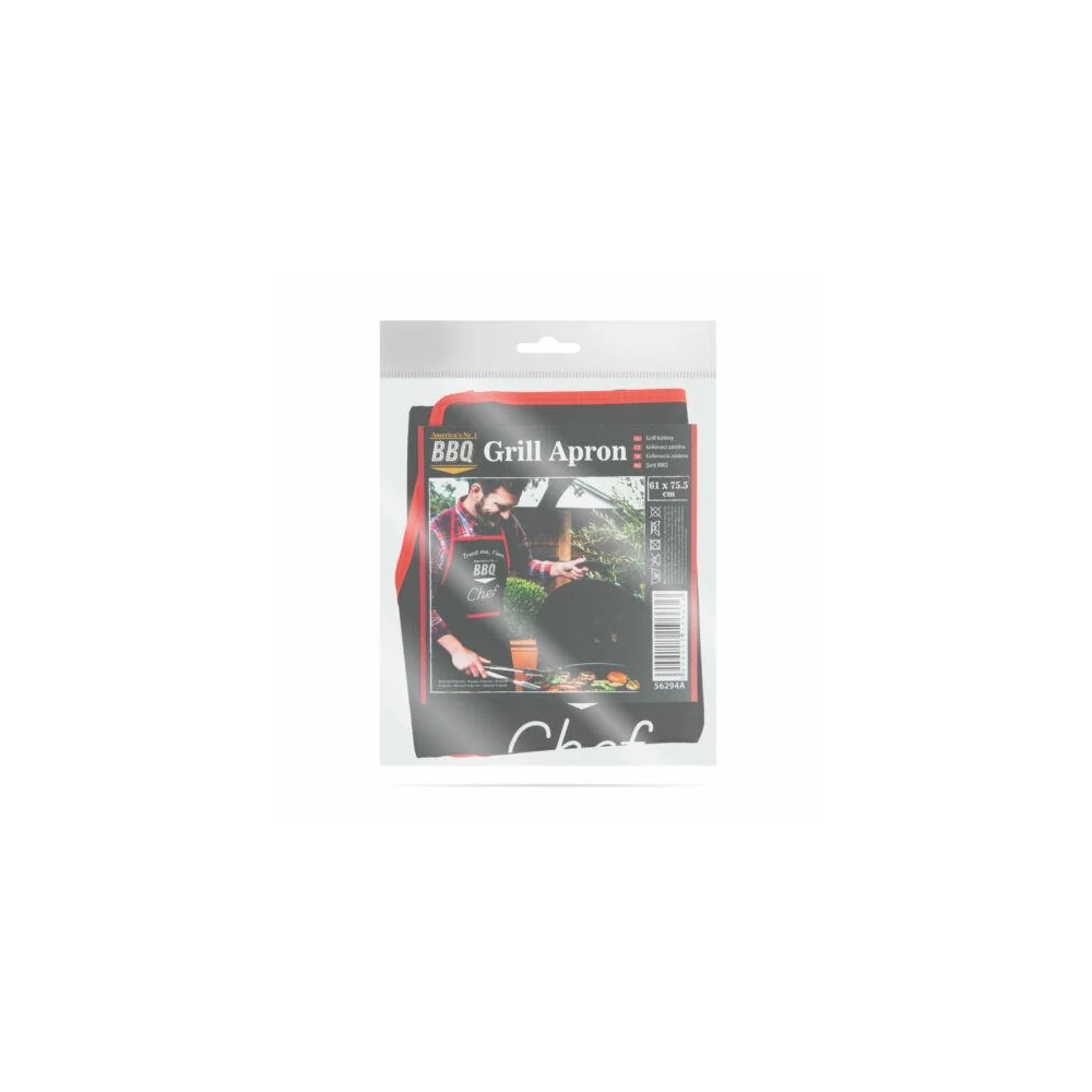 Praktikus kiegészítője a kerti sütögetésnek. Megvédi ruháját a zsírfoltoktól. Poliészter anyaga vízlepergető hatással bír. A középen lévő nagyméretű zsebben mindig magánál tudhatja a legfontosabb BBQ kellékeket.