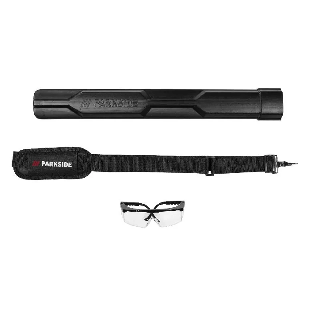 - Mellékelt tartozékok: 1 db állítható hosszúságú hordozószíj karabinerrel, 1 db védőszemüveg, 1 db láncvédő huzat