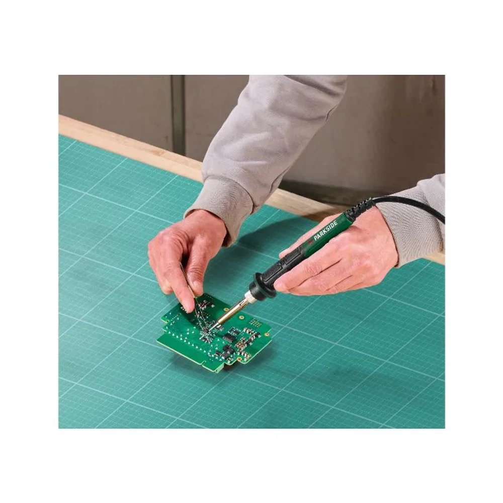 - Mellékelt tartozékok: 4 hőpisztoly-feltét, 2 forrasztóhegy (1 hegyes - előszerelt, 1 lapos hegyű), 40 g forrasztóón (Ø 1,2 mm), 1 műanyag tartó, 1 fém tartó fém tállal, 1 tisztítószivacs