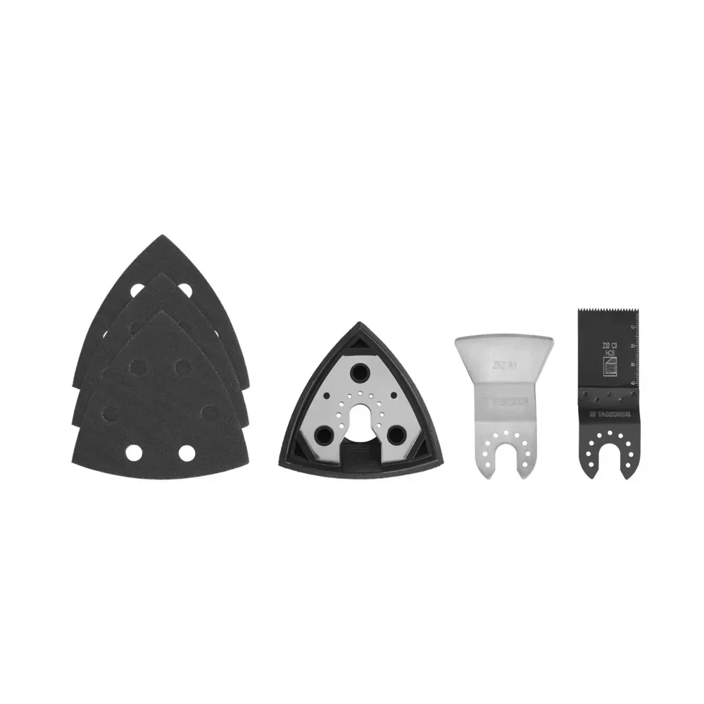 | - Mellékelt tartozékok | 1 merülő fűrészlap, 1 kaparólap, 1 delta csiszolólap, 3 csiszolólap fémhez (240-es szemcseméret) |