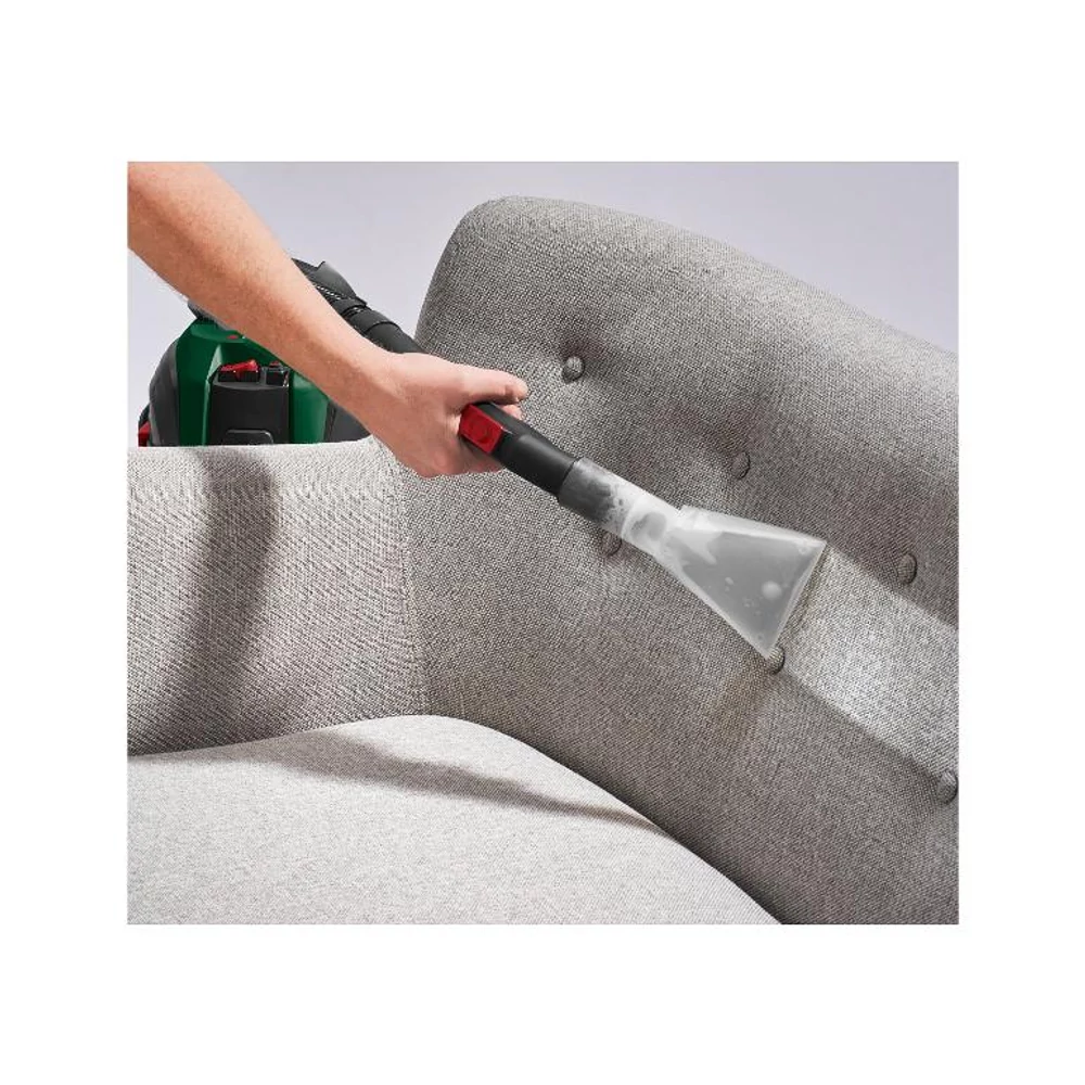 - Tartozékok: 1 kárpittisztító fúvóka, 1 keménypadló tisztító fúvóka, 1 padlótisztító fúvóka, 1 kárpittisztító fúvóka, 1 réstisztító fúvóka, 2 szívócső (egyenként 495 mm), 1 habszivacs szűrő (nedves porszívózáshoz), 1 papír szűrőzsák (száraz porszívózáshoz), 3 pót tömítőgyűrű, 100 ml szőnyeg- és kárpittisztító, 2 m szívótömlő vízcsatornával