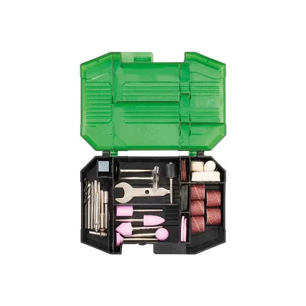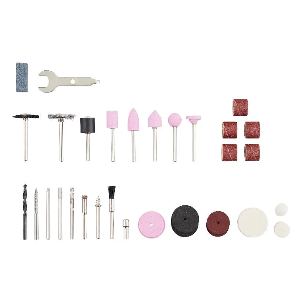 Mellékelt tartozékok: 1 flexibilis tengely, 1 állvány rögzítőszerkezettel, 1 marókosár, 1 doboz 42 alkatrészrel, LED-csatlakozó elemekkel