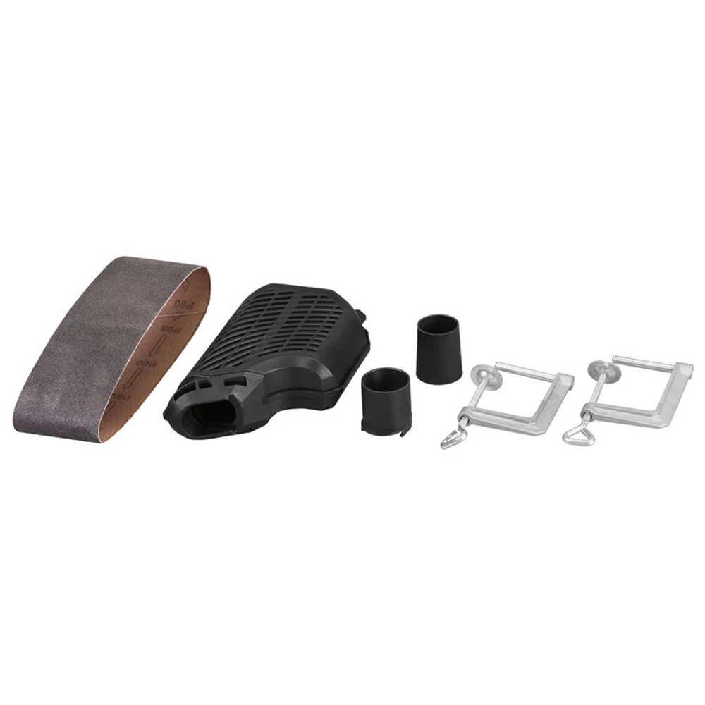 - Mellékelt tartozékok: 1 portartály, 1 adapter külső porelszíváshoz, 2 csavaros bilincs, 1 csiszolólap (szemcse 80)