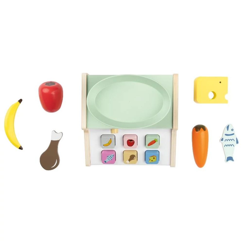 - Mérleg valódi méréshez, műanyag gombokkal, motívummal és 6 féle étellel