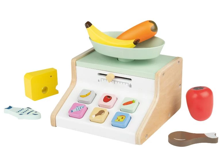 Playtive Fából készült mérleg hangot adó,gyerekkonyhába/boltba 6 részes