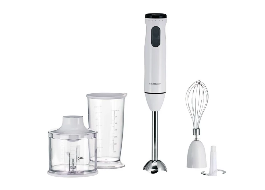 SILVERCREST botmixer készlet 600W – 4 darabos kézi mixer szett fehér, SSMS 600 G1