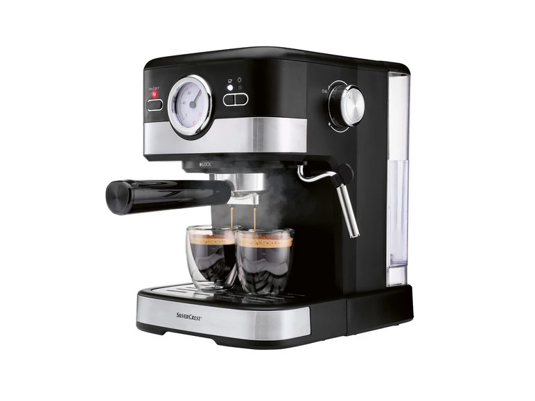SilverCrest SEM 1100 C5 Eszpresszó 2 csészés presszó kávéfőző, fekete-ezüst, 1100 W