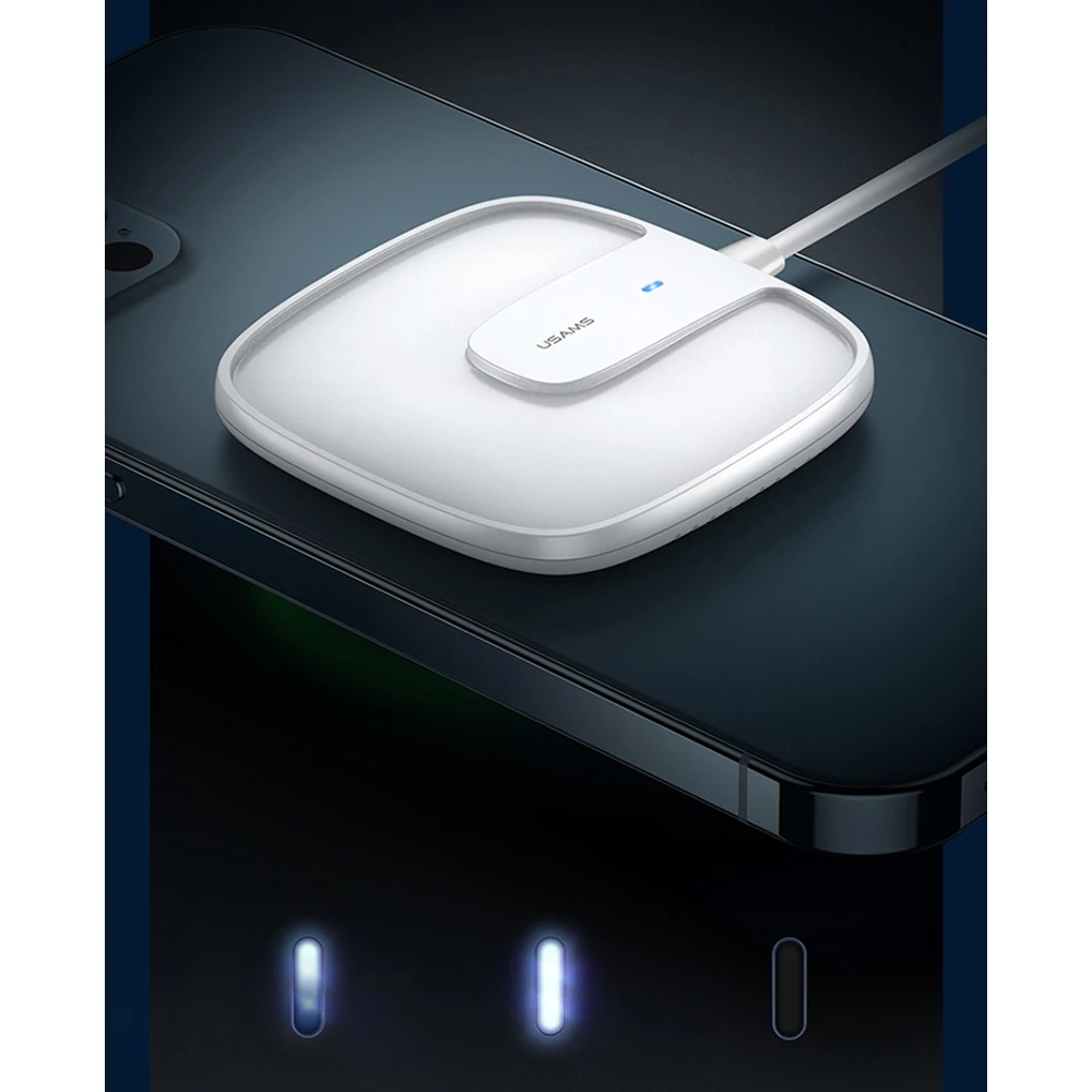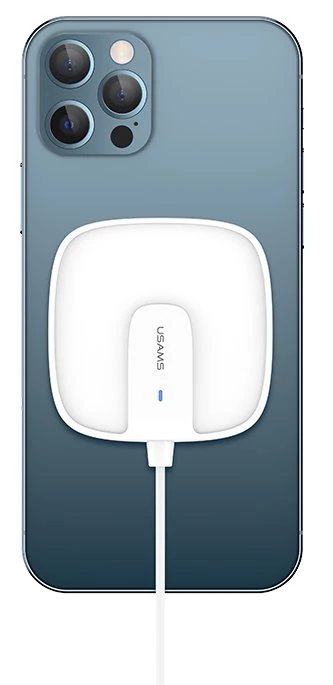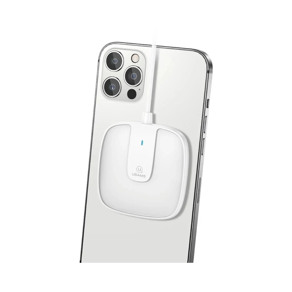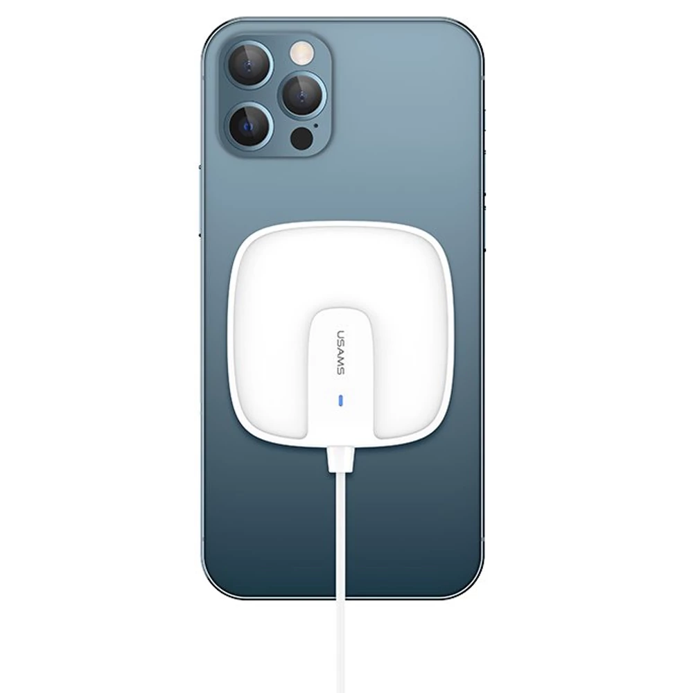 USAMS US-CD153 15W mágneses mini vezeték nélküli töltő iPhone 12-es sorozathoz iPhone 12/12 Mini / 12 Pro Max-hoz Samsung Galaxy Note S20 ultra Huawei Mate40 OnePlus 8 Pro - fehér