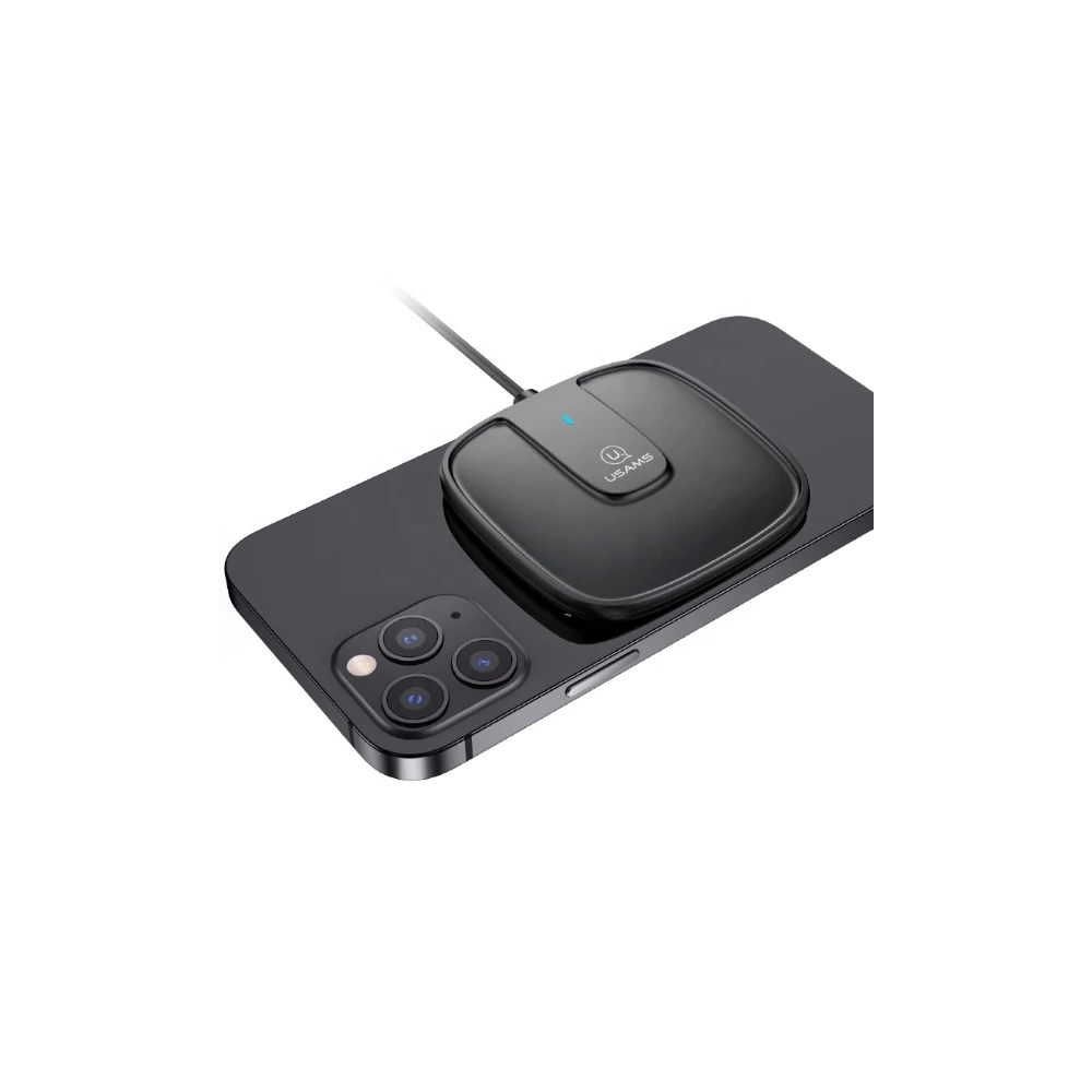 USAMS US-CD153 15W mágneses mini vezeték nélküli töltő iPhone 12-es sorozathoz iPhone 12/12 Mini / 12 Pro Max-hoz Samsung Galaxy Note S20 ultra Huawei Mate40 OnePlus 8 Pro - fekete