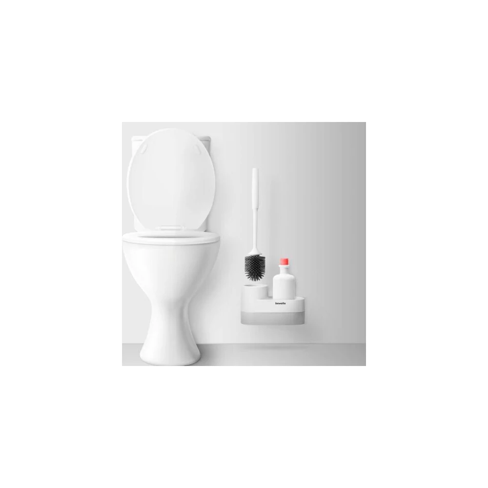Praktikus kettő az egyben termék, amely formatervezett alakjának és kellemes színének köszönhetően jól mutat bármely fürdőszobában. A strapabíró műanyag nyéllel ellátott wc kefe sötétszürke szilikon fejjel rendelkezik. A wc kefe tartó két tárolóegységgel rendelkezik, amely alkalmassá teszi kisebb eszközök tárolására.
